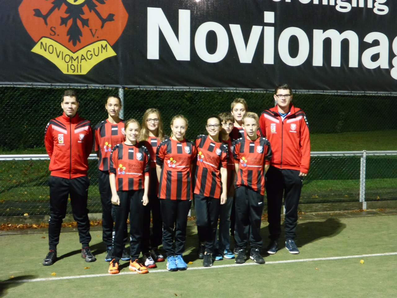 Rainbow Homes logo op shirts voor korfbalclub Noviomagnum gesponsord door ondernemer